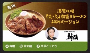 今回は「濃厚味噌「炎・炙」肉盛りラーメン2024バージョン」を提供いたします!