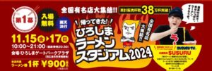【ひろしまラーメンスタジアム2024】出店致します!! 第一幕:11月15日(金)~17日(日) 10:00~21:00(最終券売 20:30)